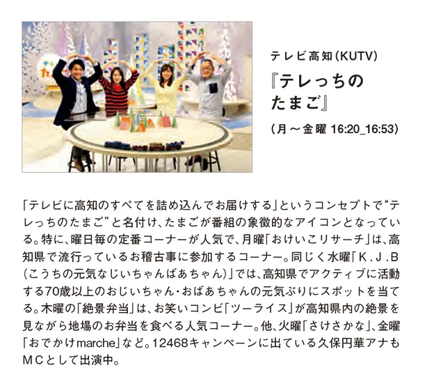 『468(ヨーロッパ)キャンペーン』というネーミングは、企画コンペを実施して、ある会社が民放3局の4ch(高知放送)、6ch(テレビ高知)、8ch(高知さんさんテレビ)の各数字をとった案として出してきて面白かったので、それを採用しました。ある会社といっても、当社の関連会社である『テレビ高知映像』なんですが(笑)」