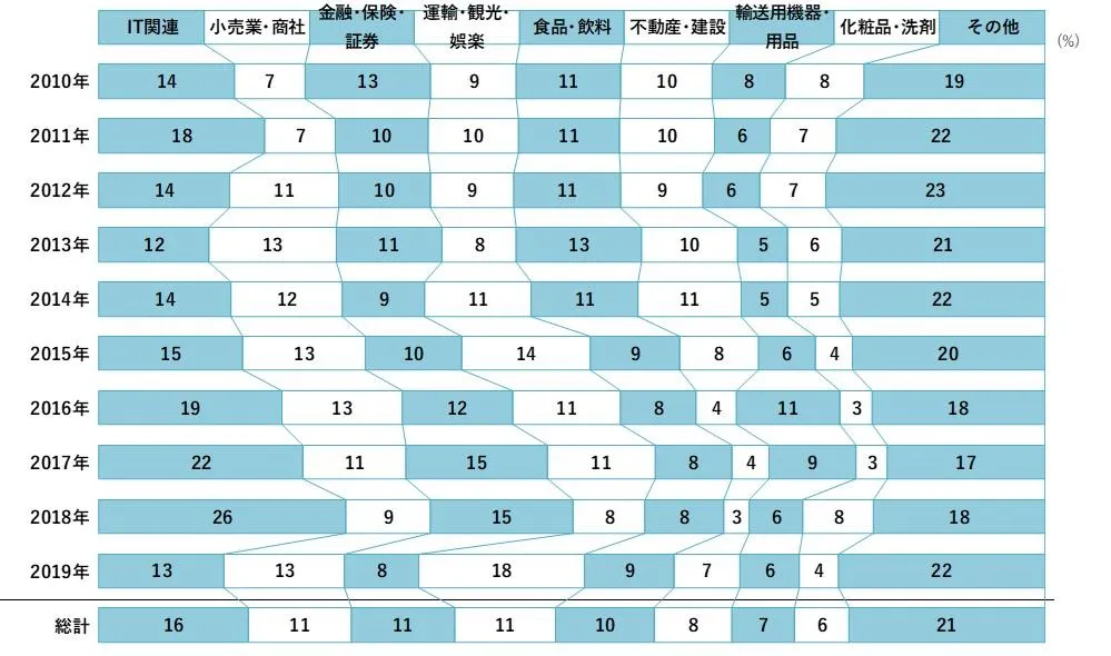 まもなく2020年を迎えるにあたり、2010年から今年までのPCバナー広告の出稿状況を取りまとめました。※1