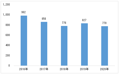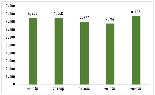 一方、園芸に関する支出金額は2020年は昨年比112%と増加しています。図3のように2016年以降、園芸に関する年間の支出金額は読書や手芸・工芸と同様に下降傾向にありましたが、2020年は一転して過去5年で最も高い支出金額となっています。