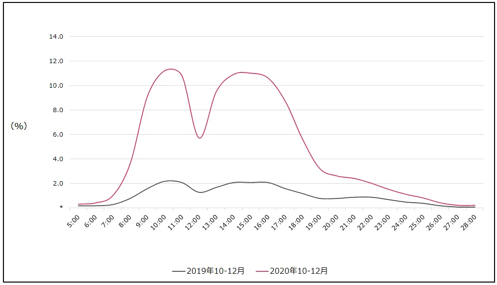 【図2】自宅内で勉強をする人の割合の変化(平日)