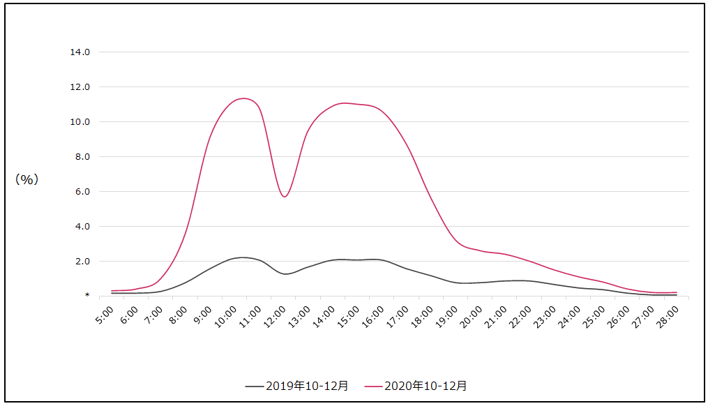 【図1】自宅内で仕事をする人の割合の変化(平日)