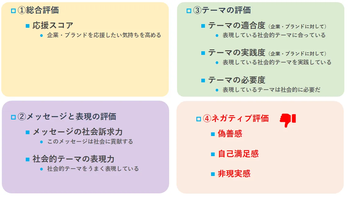 とりわけ、SDGsの取り組みのメッセージは、これまでの消費促進の広告とは異なる方向にあるので、販売効果とは別の評価視点を持つことが求められます。