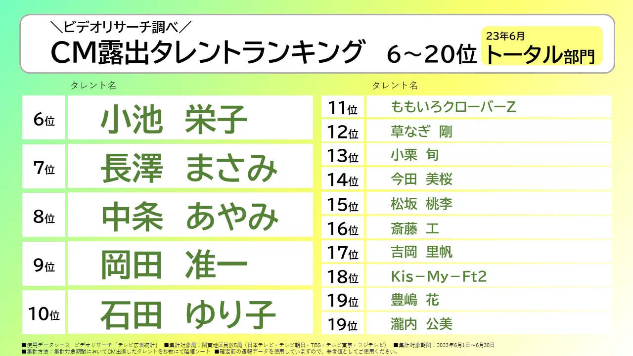 【23年6月版】ビデオリサーチ調べ!CM露出タレントランキングTOP20