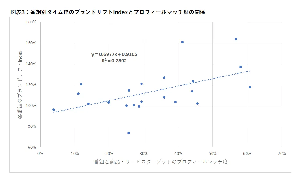 プロフィールマッチ度が高い番組ほどブランドリフトしやすい、というのは本当でしょうか。実際のデータを使って検証しました。