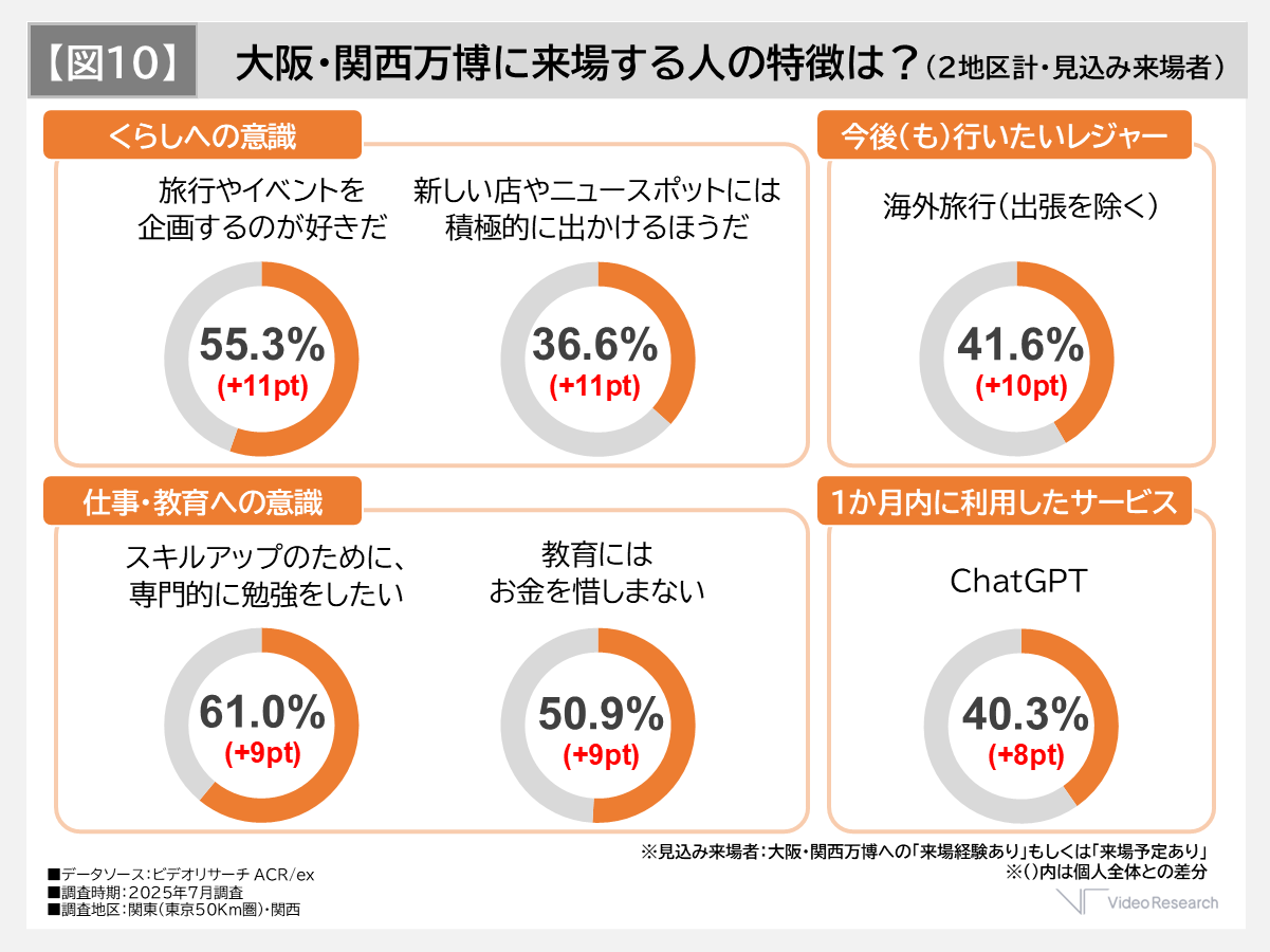 ここからは、ビデオリサーチの生活者総合調査データ「ACR/ex」の調査項目のうち、大阪・関西万博見込み来場者に特徴的にみられた項目をご紹介します。(図10)