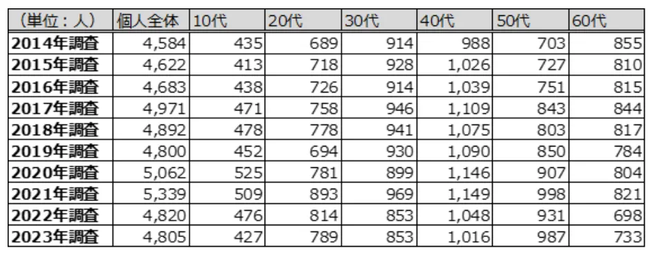 出典:「ACR/ex」東京50km圏(2014年~2023年 4~6月調査)