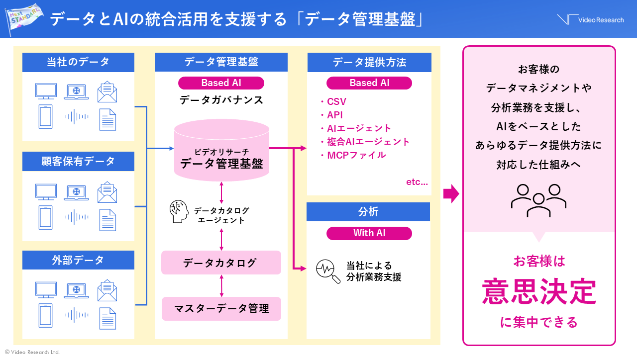 こうした取り組みをふまえて木塚は、「生成AIの活用が進むとデータの正しさが重要になる。その中でビデオリサーチに求められるのは、生成AIが理解・判断しやすい形にデータを整備することなのではないか」と述べました。加えて、データ提供方法もお客さまのニーズに応え、多様な形式を選べる環境を準備していきたいと展望を語りました。