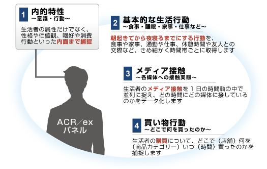 『ACR/ex』と同一サンプルに実施する生活行動調査を軸に、メディアを取り巻く環境の変化と生活行動に関するデータを提供しています。