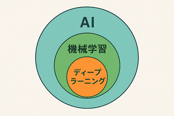 機械学習とディープラーニングは、競合する概念ではなく、包含関係にある点をまず理解することが重要です。
